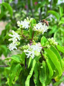 Native to China, the Seven-son flower has bouquets of very fragrant, creamy white star shaped flowers (Photo by Ginny Rosenkranz)